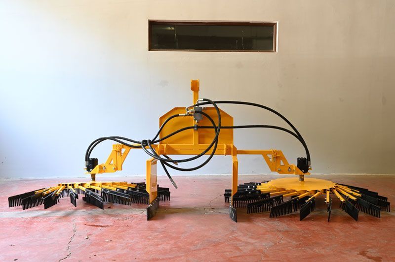 Il nostro andanatore per frutta a guscio di Viterbo, uno dei nostri prodotti di punta, è studiato per essere facilmente applicabile al sollevatore anteriore del mezzo ed è progettato per favorirne la manovrabilità, poiché presenta una minima sporgenza in avanti.