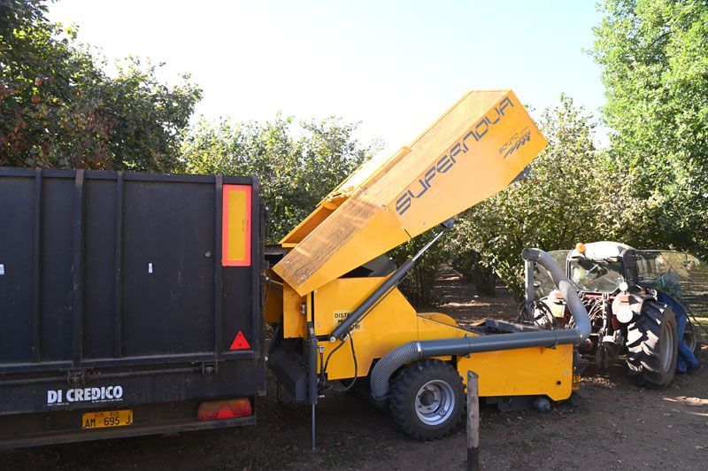 SUPERNOVA: raccoglitrice meccanica per nocciole a Viterbo trainata con contenitore incorporato