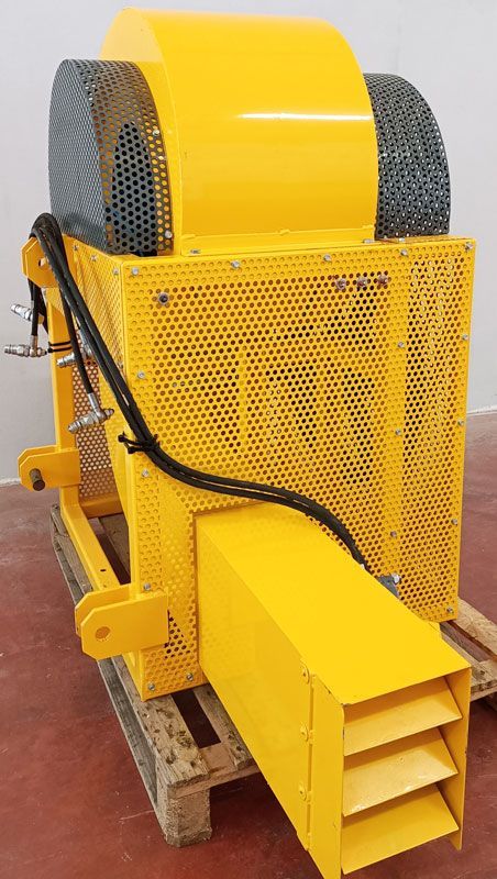 I flussi d'aria del soffiatore per frutta a guscio a Viterbo e la loro intensità sono regolabili dall'alto in basso e viceversa, grazie ad appositi pistoncini idraulici e ai giri stessi del trattore.